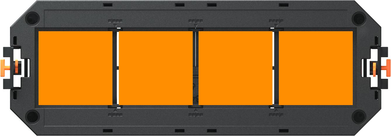 Product descriptionUniversal support with two strain reliefs, mounting bridges, partition and UT4 P4 cover plate for installation of 4 Modul 45 devices in device installation units of nominal sizes R7, R9 and 9.