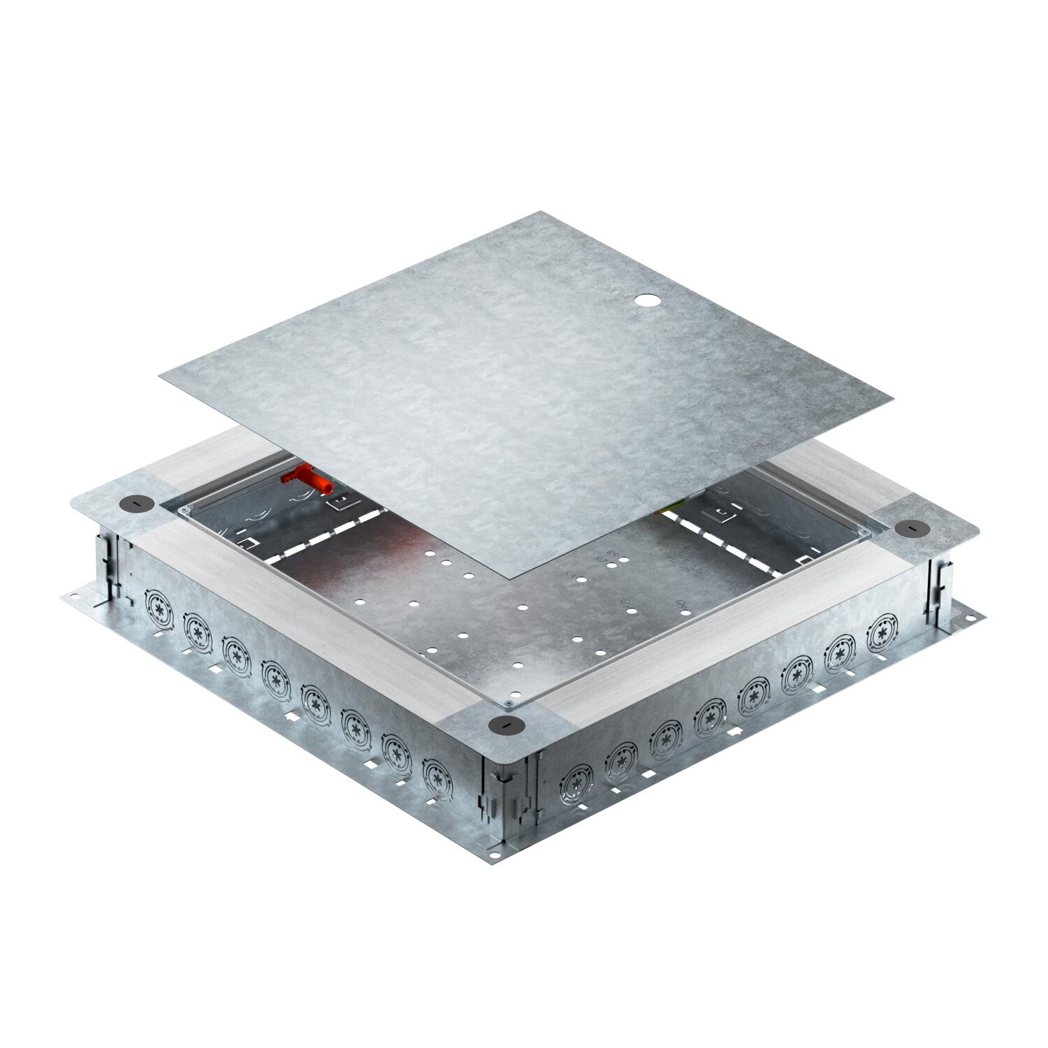 Product descriptionJunction and branch box UZD350-4 R with side walls made of sheet steel. For mounting of installation units in the mounting lid (to be ordered separately). Can be infinitely adjusted to a nominal screed height of 80–160 mm using the quick height-adjustment unit. The screed can be worked up to be flush with the screed edge. With an acoustic decoupling option after screed laying, and with system accessories, it can be used for heavy-duty applications. Insertion of cables through the pipe entries. Pipe entry per side suitable for 8 installation pipes each of the diameters M20, M25 and M32