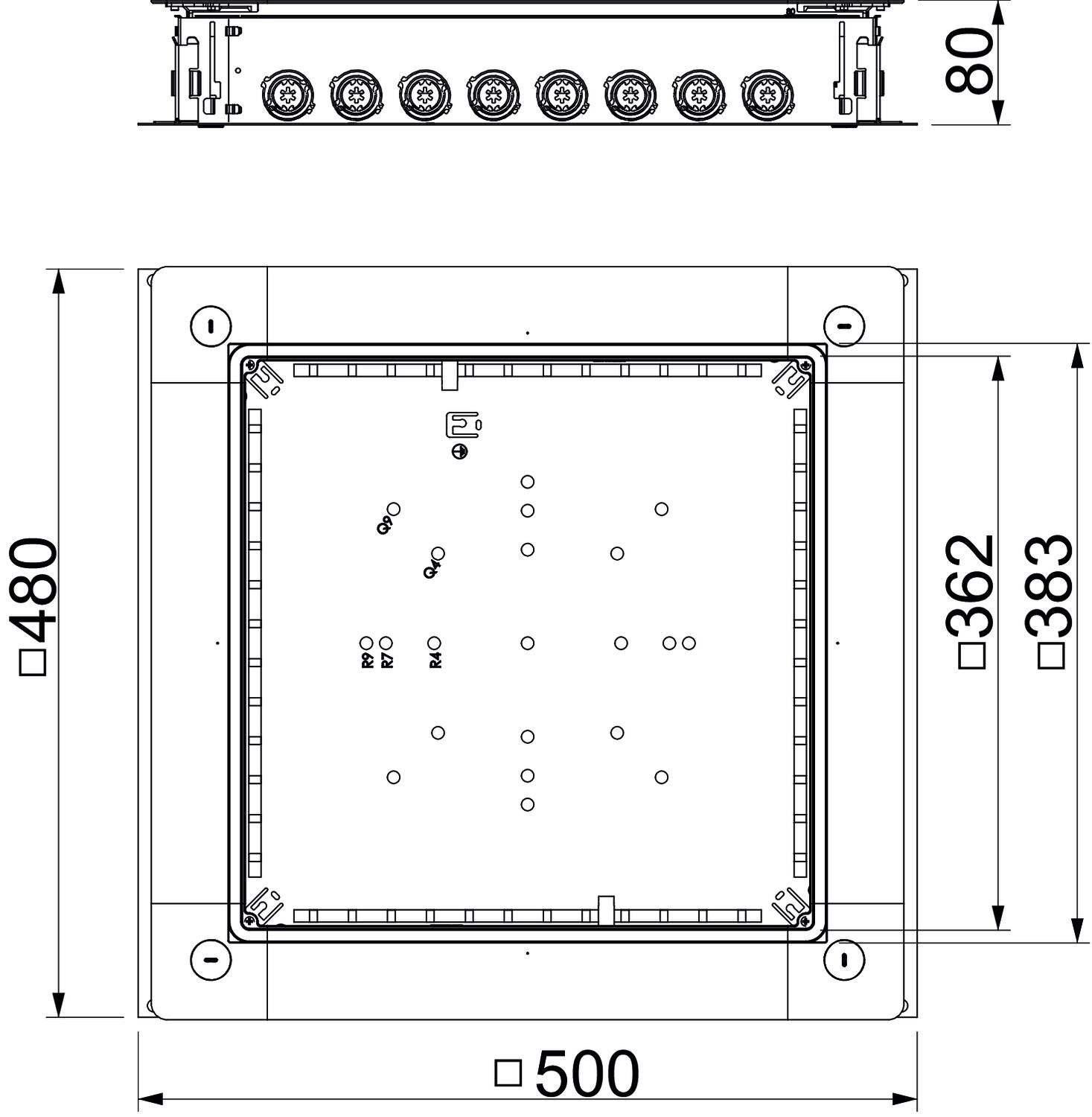 CO2 Footprint (GWP) Cradle-to-Gate 29,833 kg CO2e / 1 Piece Cover version Universal Decouplable yes Dimension 500x480x80 Dimension A 480 mm Dimension a 362 mm Dimension b 383 mm Dimension B 500 mm Floor plate yes For pipe connection yes Height-adjustment range, max. 160 mm Height-adjustment range, min. 80 mm Installation opening for flush-mount unit Square Installation opening for on-floor tank no Material Steel Minimum screed height 80 Nominal size 350 mm Number of installable devices 1 Protection rating (IP) when used IP20 Screed height, max. 160 mm Screed height, min. 80 mm Seal installation option yes Suitable for screed-covered underfloor ducts no Suitable for screed-flush closed underfloor ducts no Suitable for underfloor ducts no Surface Strip galvanized - All types