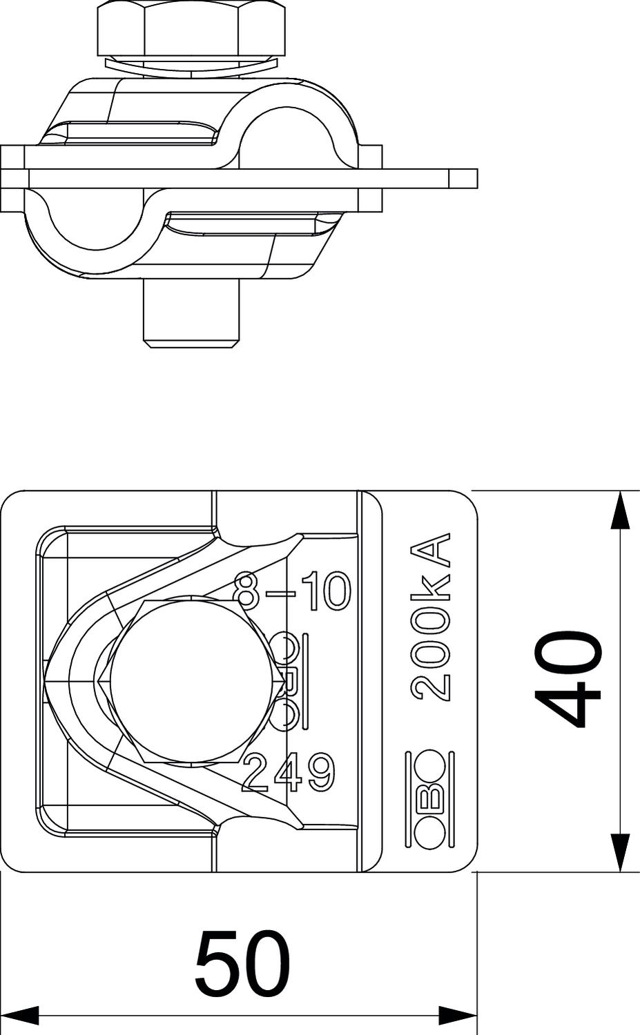 CO2 Footprint (GWP) Cradle-to-Gate 0,891 kg CO2e / 1 Piece Dimension 50x40mm Fit Rd 8-10 mm Intermediate plate no Lightning current carrying capacity H2/200 kA Material Stainless steel 1.4301 Round conductor diameter, conductor 1, max. 10 mm Round conductor diameter, conductor 1, min. 8 mm Round conductor diameter, conductor 2, max. 10 mm Round conductor diameter, conductor 2, min. 8 mm Suitable for connection Round conductor Rd 8–10 / Rd 8–10 Type of connector Multipurpose connection clamp Type of fastening screw Hexagonal bolt - All types