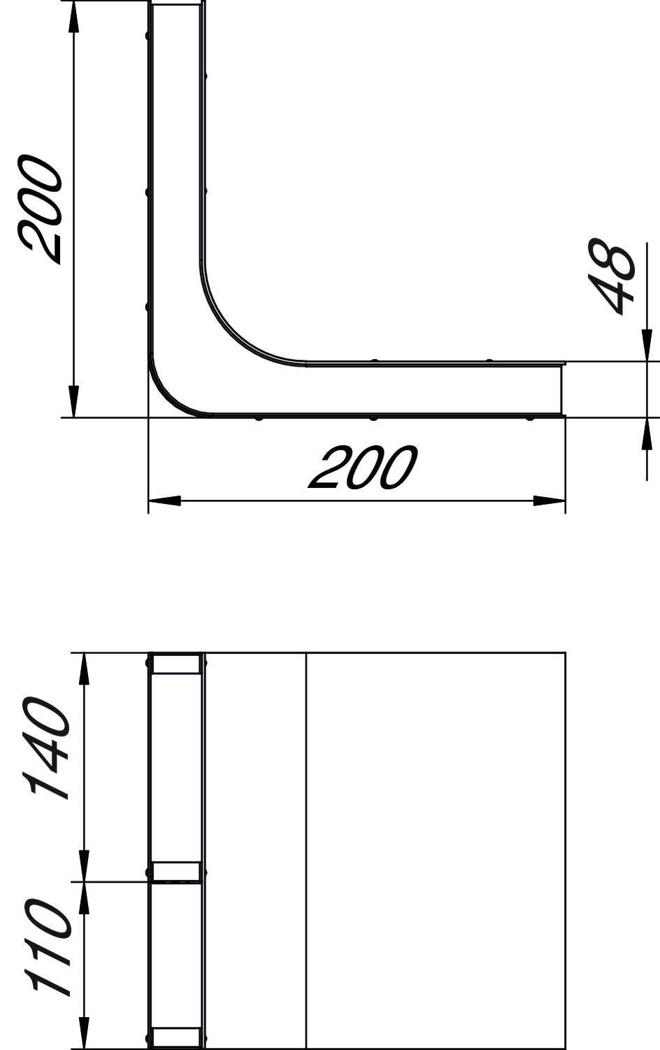 Cross-section, draw a 4968 mm² Cross-section, draw b 6348 mm² Dimension a 110 mm Dimension b 140 mm Dimension h 48 mm Duct height, min. 48 mm Height 48 mm Length 200 mm Material Steel Number of compartments 2 St. Number of fixed partitions 1 Suitable for screed-covered underfloor ducts yes Suitable for screed-flush closed underfloor ducts no Surface Strip galvanized Trunking width, min. 250 mm Width 250 mm - All types